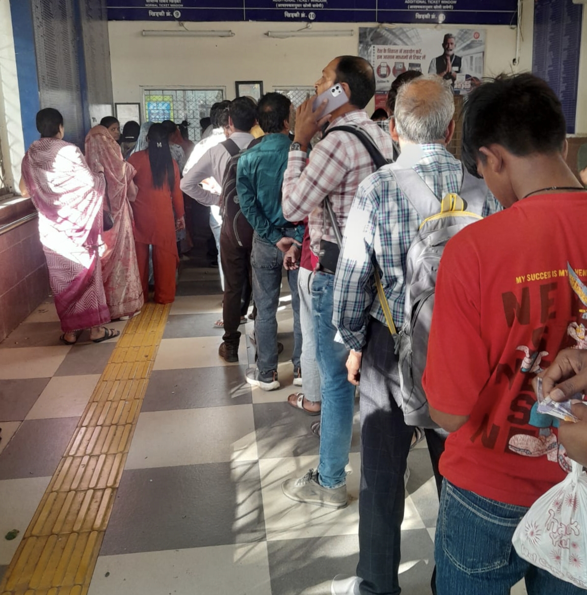 सांसें फूला रही टिकिट विंडो…रेलवे प्लेटफॉर्म नंबर 7 पर खोल रहे एक ही विंडो, लगी लंबी कतारें, दौड़ते-भागते यात्री पकड़ रहे ट्रेन